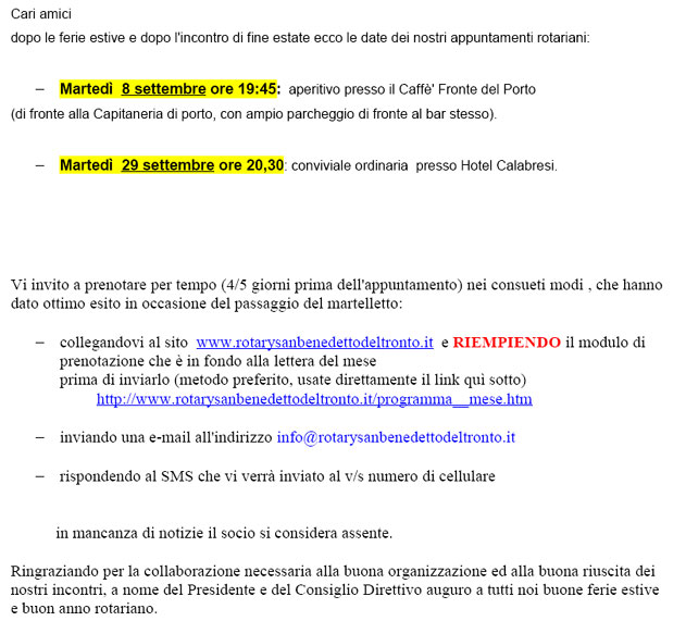 ROTARY CLUB SAN BENEDETTO DEL TRONTO : Sede presso HOTEL CALABRESI - Lungomare C.Colombo - Tel. 328/4682752