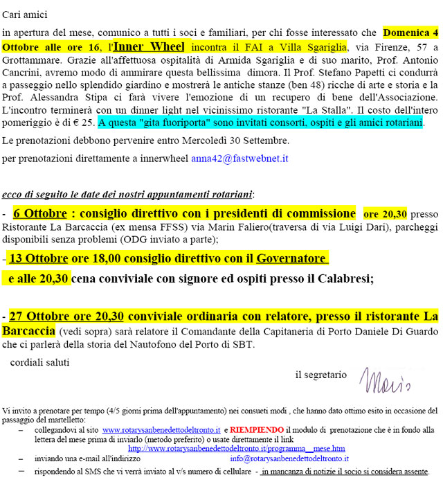 ROTARY CLUB SAN BENEDETTO DEL TRONTO : Sede presso HOTEL CALABRESI - Lungomare C.Colombo - Tel. 328/4682752