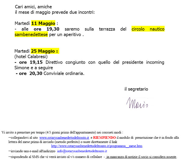 ROTARY CLUB SAN BENEDETTO DEL TRONTO : Sede presso HOTEL CALABRESI - Lungomare C.Colombo - Tel. 328/4682752